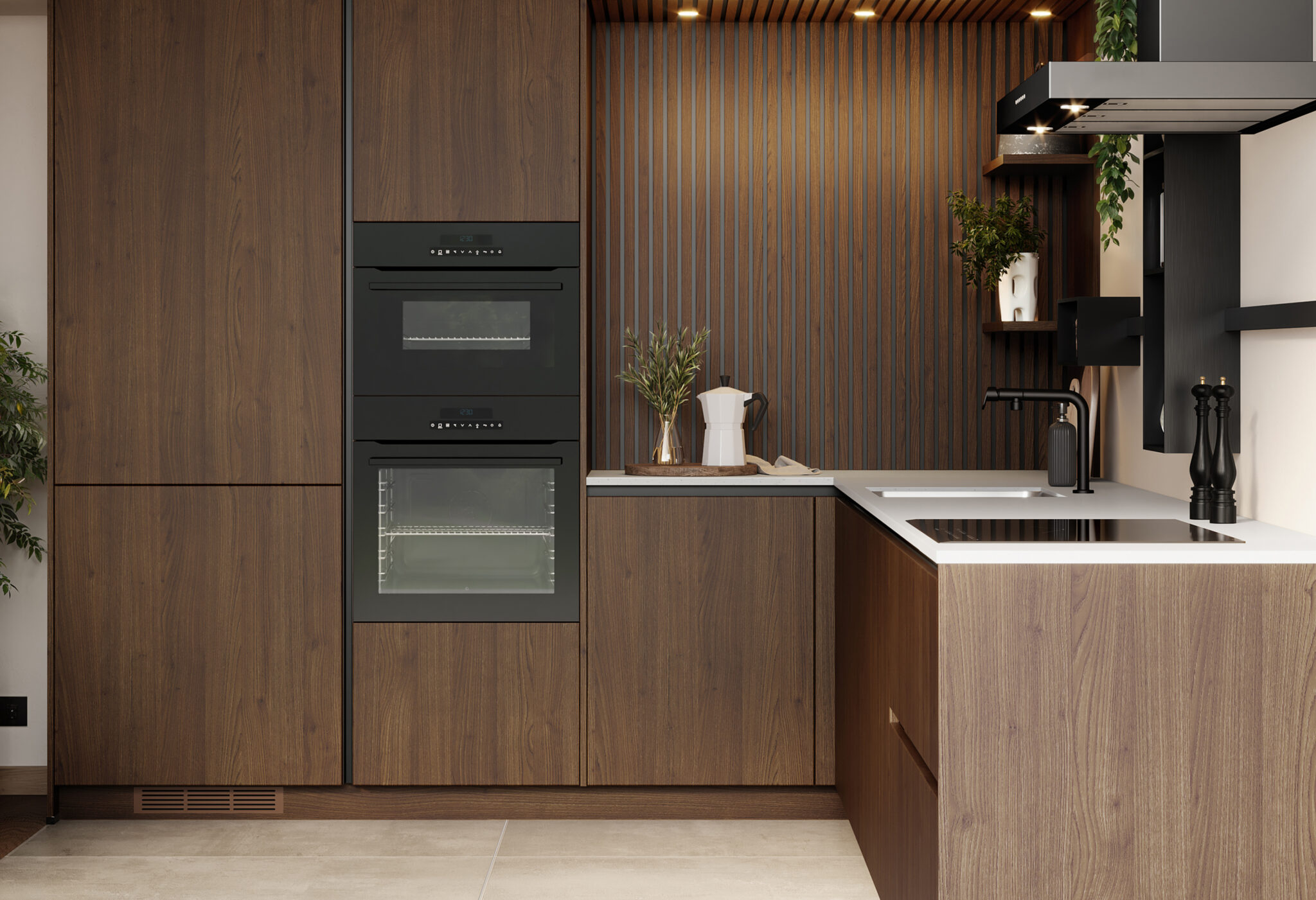 Cette cuisine contemporaine a séduit Alisson par son élégance discrète et ses matériaux soigneusement choisis. La niche en bois Wood Up apporte une touche naturelle et chaleureuse, contrastant harmonieusement avec le plan de travail plus clair. La barre de crédence astucieusement intégrée lui permet de garder ses accessoires de cuisine à portée de main, alliant praticité et esthétique. Un bel exemple de design accessible, où style et fonctionnalité se rencontrent sans compromis.