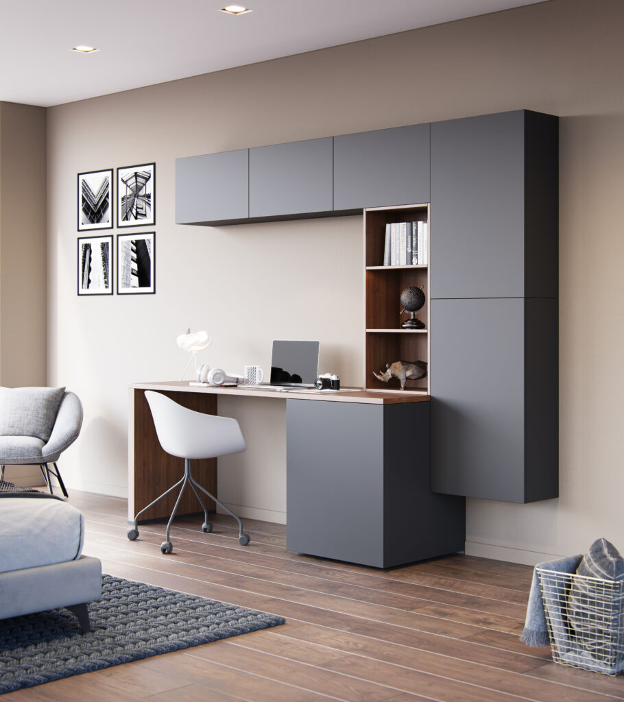 Vous n’avez pas de pièce dédiée à votre bureau ? Faites en sorte que les armoires de rangement de votre espace de travail s'intègrent parfaitement dans le design du reste de votre mobilier. Qu’il s’agisse de votre salon, d’une chambre ou d’un couloir, vous pouvez choisir les matériaux et coloris qui sont assortis aux meubles existants.