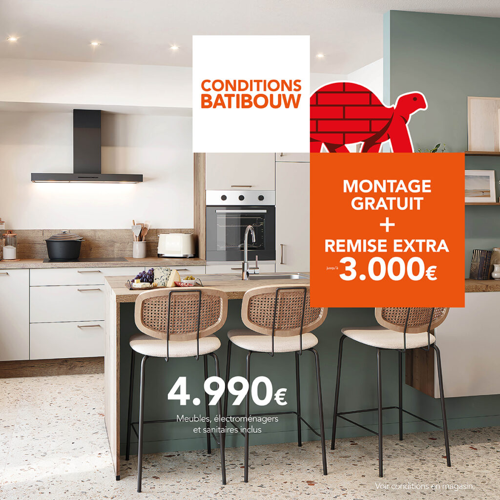 Profitez, dès maintenant de nos conditions Batibouw: jmontage gratuit + jusqu’à 3.000€ de réduction sur votre nouvelle cuisine !