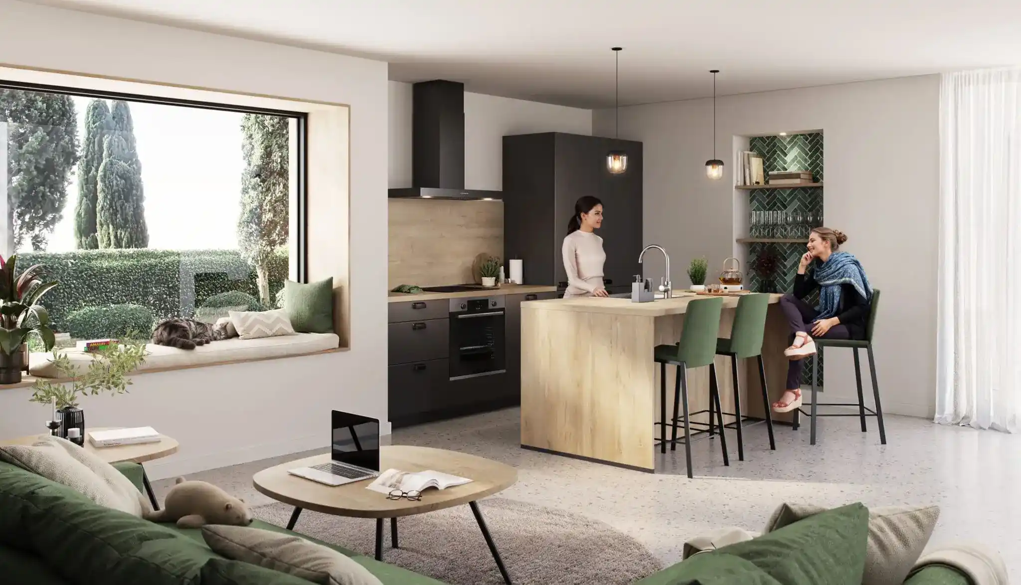 Julie en Roos zochten een mooie, functionele en betaalbare keuken, met respect voor hun budget. Hun eiland is een alles-in-één leefruimte: perfect om aan te koken, te eten of bij te praten rond een glaasje. De oven onder de kookplaat benut de ruimte optimaal en de decoratieve nis geeft het geheel een persoonlijke toets. Samen met èggo ontwierpen ze een ruimte die bij hen past: praktisch, gezellig en resoluut stijlvol. En dat alles met oog voor hun budget.